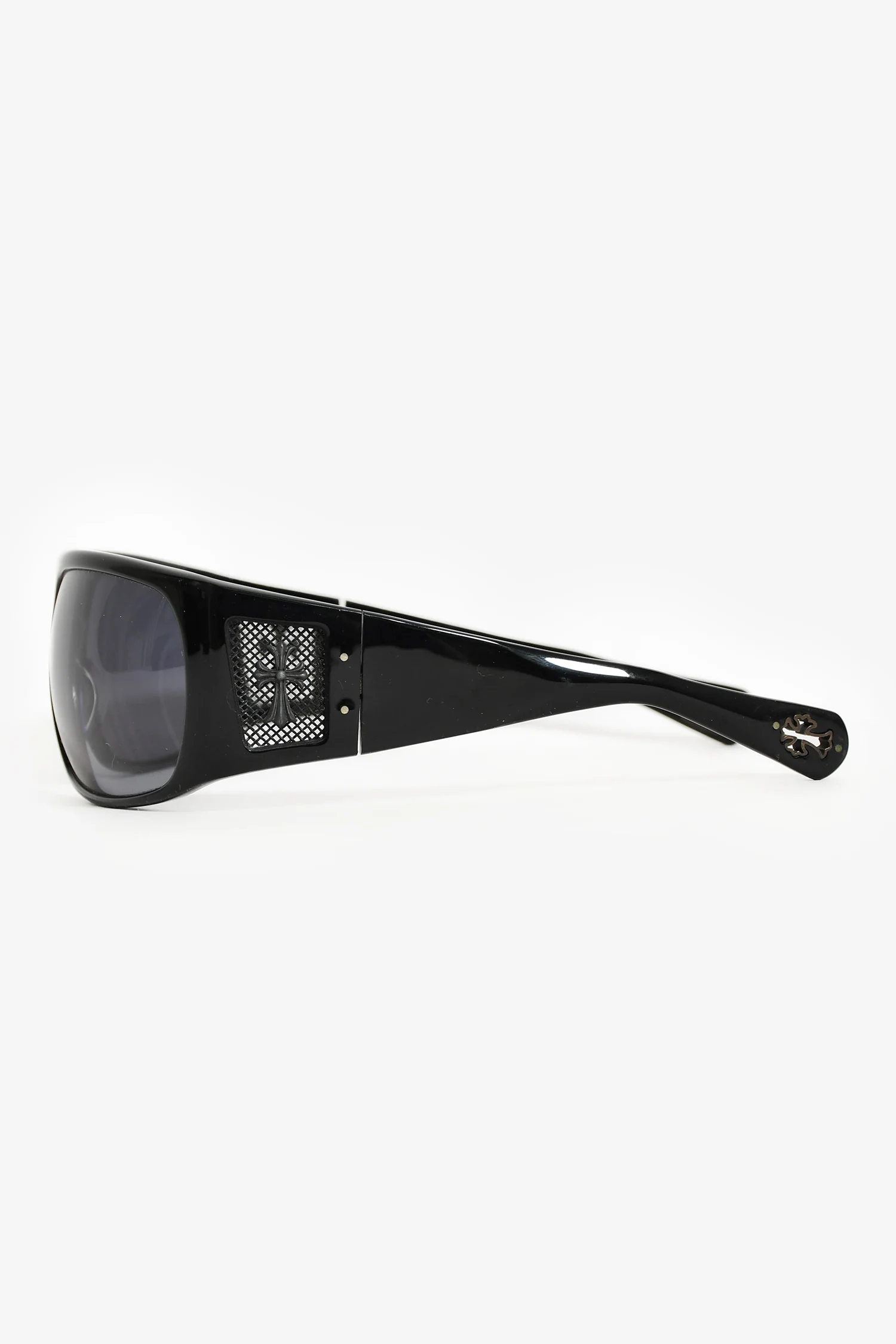Chrome Hearts Black Shield Sunglasses. Built-in nose pads. Gunmetal hardware.