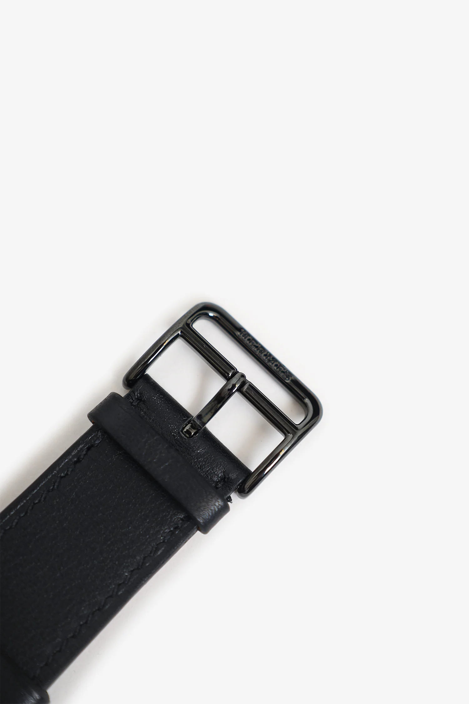 Hermès Black Swift Apple Watch Strap. Adjustable pull-through buckle closure. Tonal stitching.